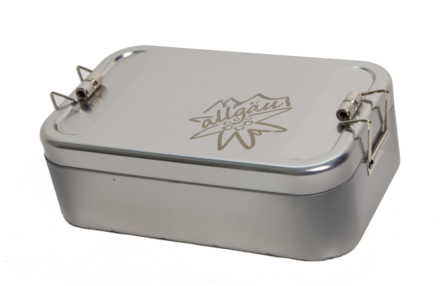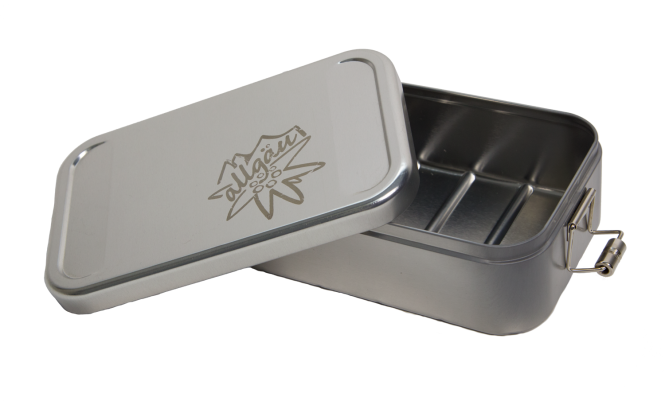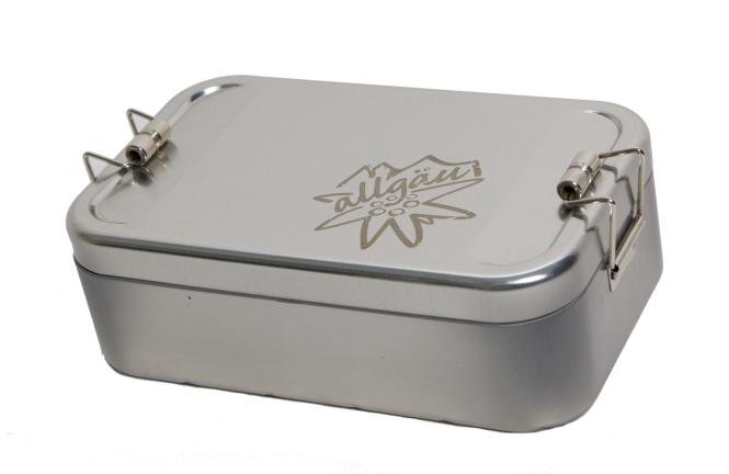Lebensmittelechte Brotzeitbox mit Lasergravur. Größe: 18,5 cm x 11 cm x 5,4 cm