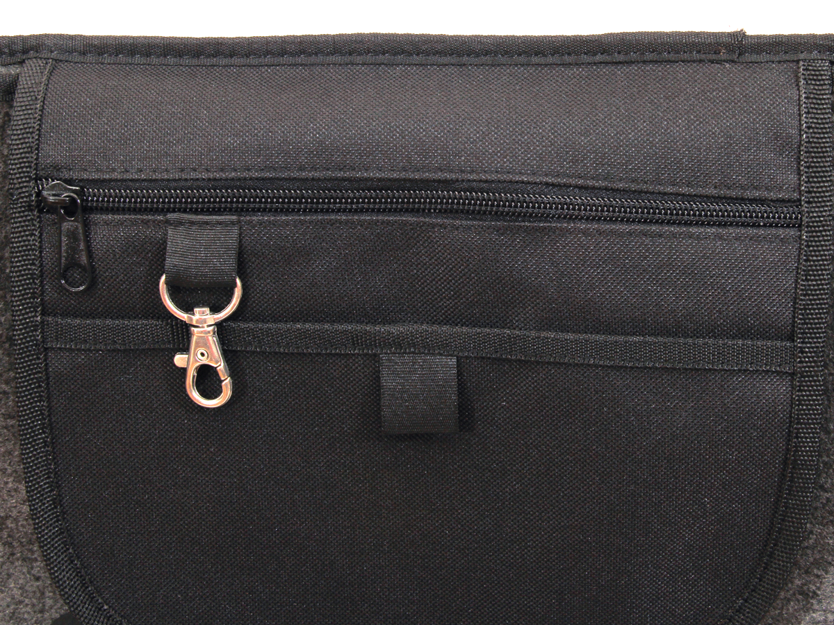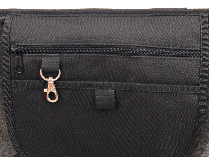 Der klassische anthrazitfarbene Filz verleiht der Tasche eine angenehm raue Natürlichkeit.