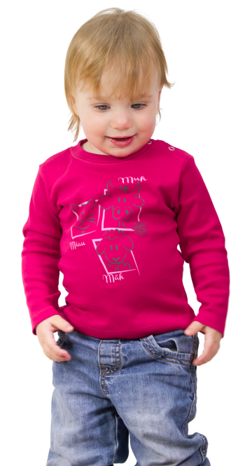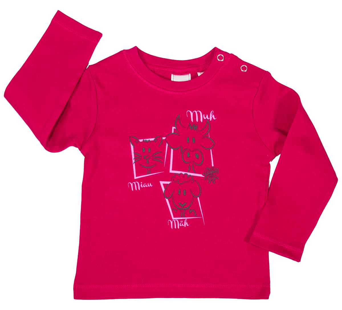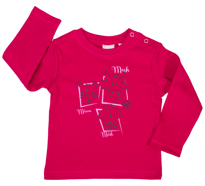 Baby-Langarmshirt mit Rundhalsbündchen aus Elasthan-1x1-Rippe. Druckknöpfe am Hals, für einfaches Anziehen.