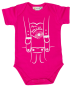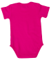 Baby-Kurzarm-Strampler aus weichem elastischem Interlock, mit schmal eingfasstem Hals- und Armausschnitt. Überlappende Schultern und Druckknöpfe im Schritt, für einfaches Anziehen.