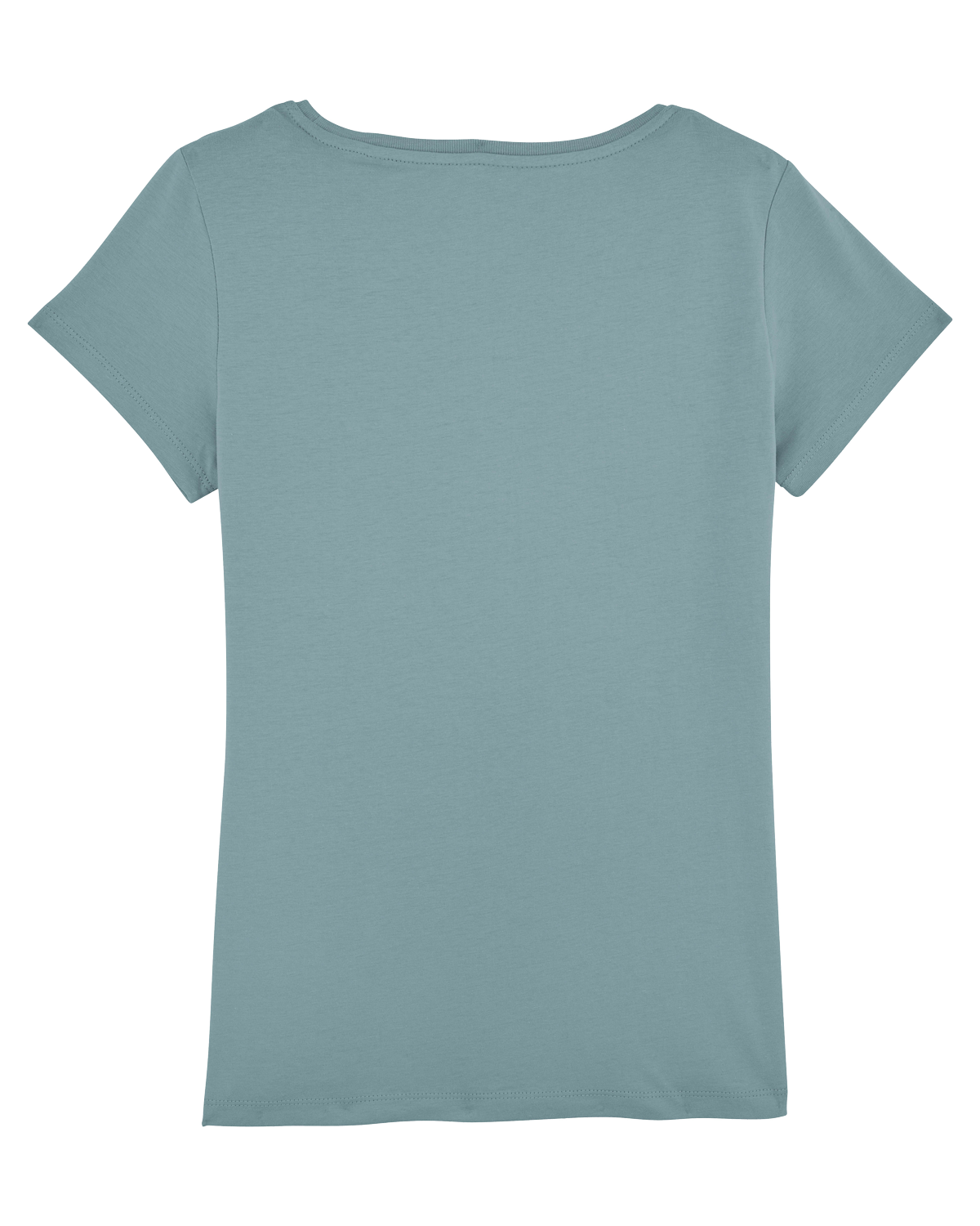 Klassisches T-Shirt aus feinem, mittelschwerem Single Jersey aus ringgesponnener und gekämmter Baumwolle, mit femininem Rundhals-Ausschnitt. Modisch schmales Halsbündchen und Doppelnaht an Arm und Bund.