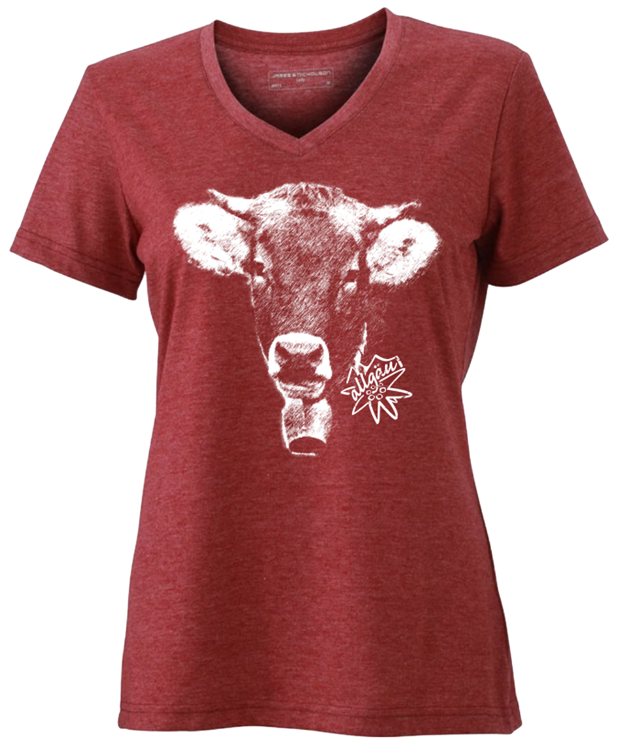 Modisches, tailliertes Damen T-Shirt mit V-Ausschnitt, aus hochwertiger Melange Single Jersey Qualität. Lässige komfortable Schnittform und V-Ausschnitt.