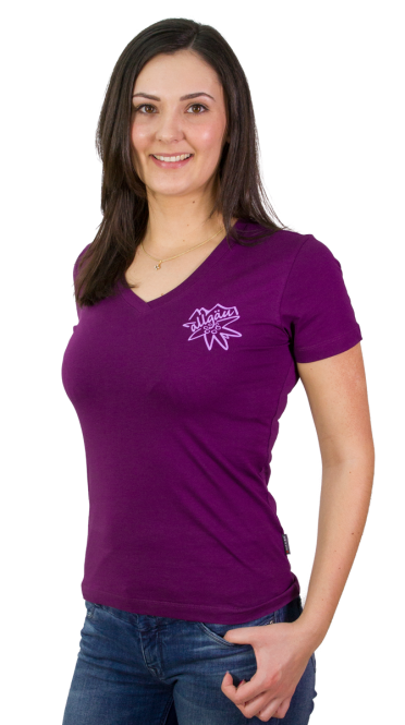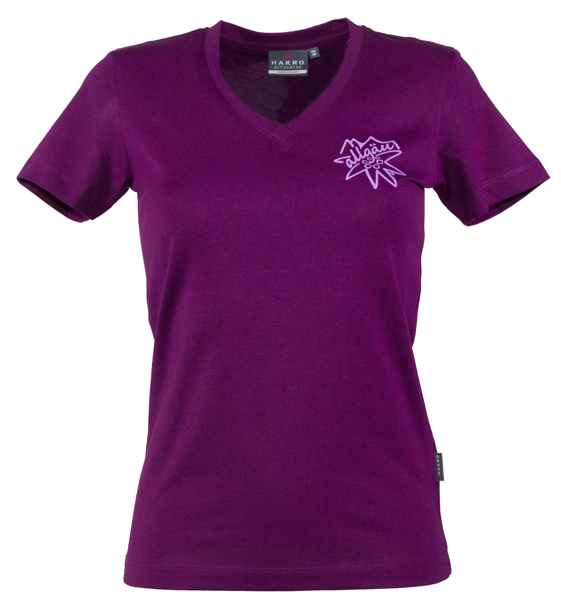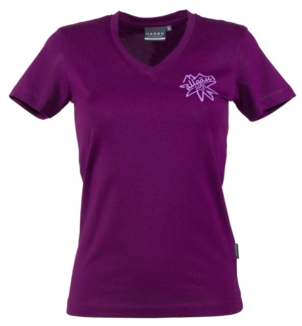 Klassisches V-Shirt von Hakro®, aus feinem, mittelschwerem Single Jersey aus ringgesponnener und gekämmter Baumwolle, mit femininem V-Ausschnitt. Modisch schmales Halsbündchen und Doppelnaht an Arm und Bund.