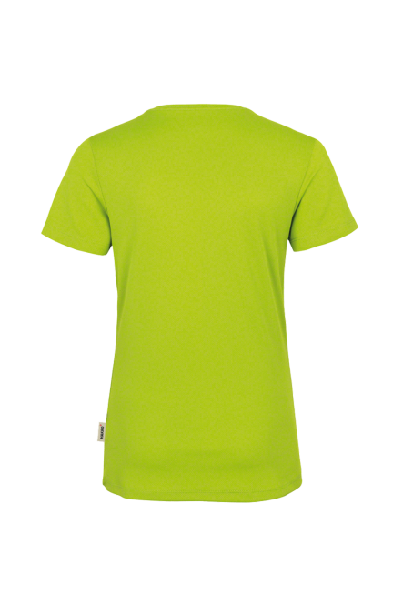 Funktionelles T-Shirt für Damen mit feminin geschnittenem V-Ausschnitt, verlängertem, abgerundetem Rückenteil und Nackenband. Hergestellt aus COOLMAX® EXTREME – einer Funktionsfaser für extreme Belastungen. Temperaturregulierend durch schnellen Transport der Feuchtigkeit an die Textilaußenseite, wo sie sofort verdunsten kann; atmungsaktiv, pflegeleicht und schnell trocknend.