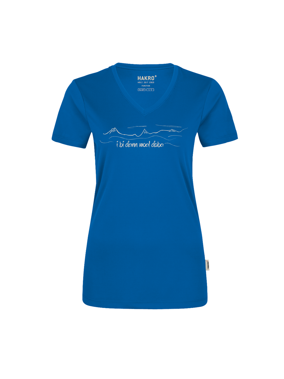 Funktionelles T-Shirt für Damen mit feminin geschnittenem V-Ausschnitt, verlängertem, abgerundetem Rückenteil und Nackenband. Hergestellt aus COOLMAX® EXTREME – einer Funktionsfaser für extreme Belastungen. Temperaturregulierend durch schnellen Transport der Feuchtigkeit an die Textilaußenseite, wo sie sofort verdunsten kann; atmungsaktiv, pflegeleicht und schnell trocknend.