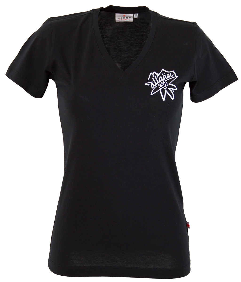 Klassisches V-Shirt von Hakro®, aus feinem, mittelschwerem Single Jersey aus ringgesponnener und gekämmter Baumwolle, mit femininem V-Ausschnitt. Modisch schmales Halsbündchen und Doppelnaht an Arm und Bund.