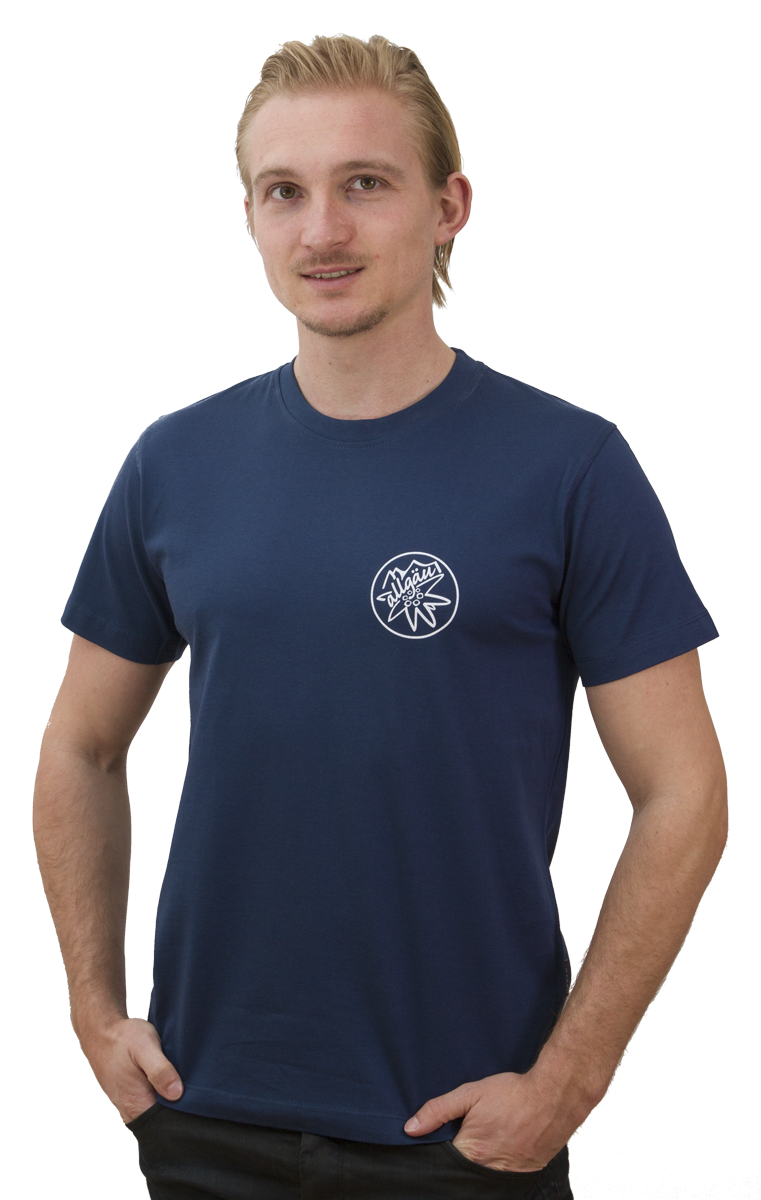 Klassisches T-Shirt mit rundem Halsausschnitt, LYCRA®-verstärktem Bündchen und Nackenband. Hergestellt aus feinem, mittelschwerem Single-Jersey aus langstapeliger, gekämmter und ringgesponnener Baumwolle.