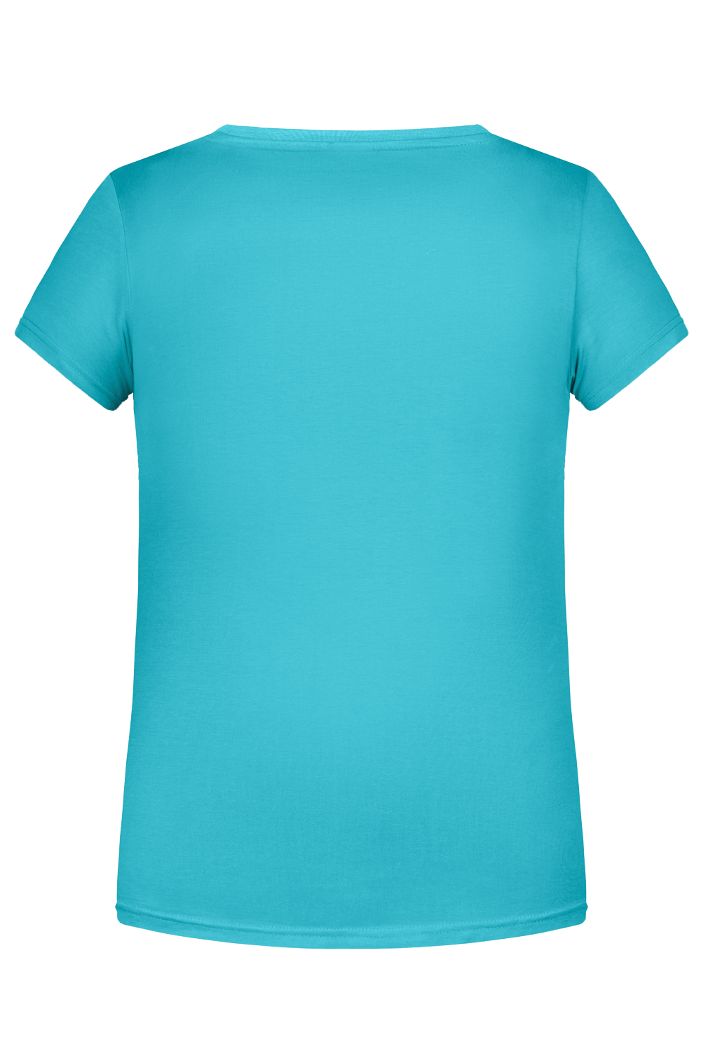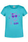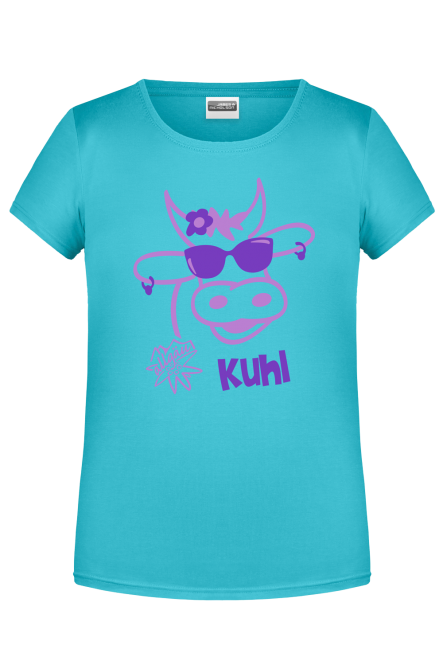 Mädchen T-Shirt mit weiblichem Ausschnitt, mit gekräuseltem Halsausschnitt und Ärmel.