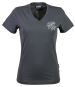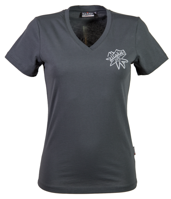 Klassisches V-Shirt von Hakro®, aus feinem, mittelschwerem Single Jersey aus ringgesponnener und gekämmter Baumwolle, mit femininem V-Ausschnitt. Modisch schmales Halsbündchen und Doppelnaht an Arm und Bund.