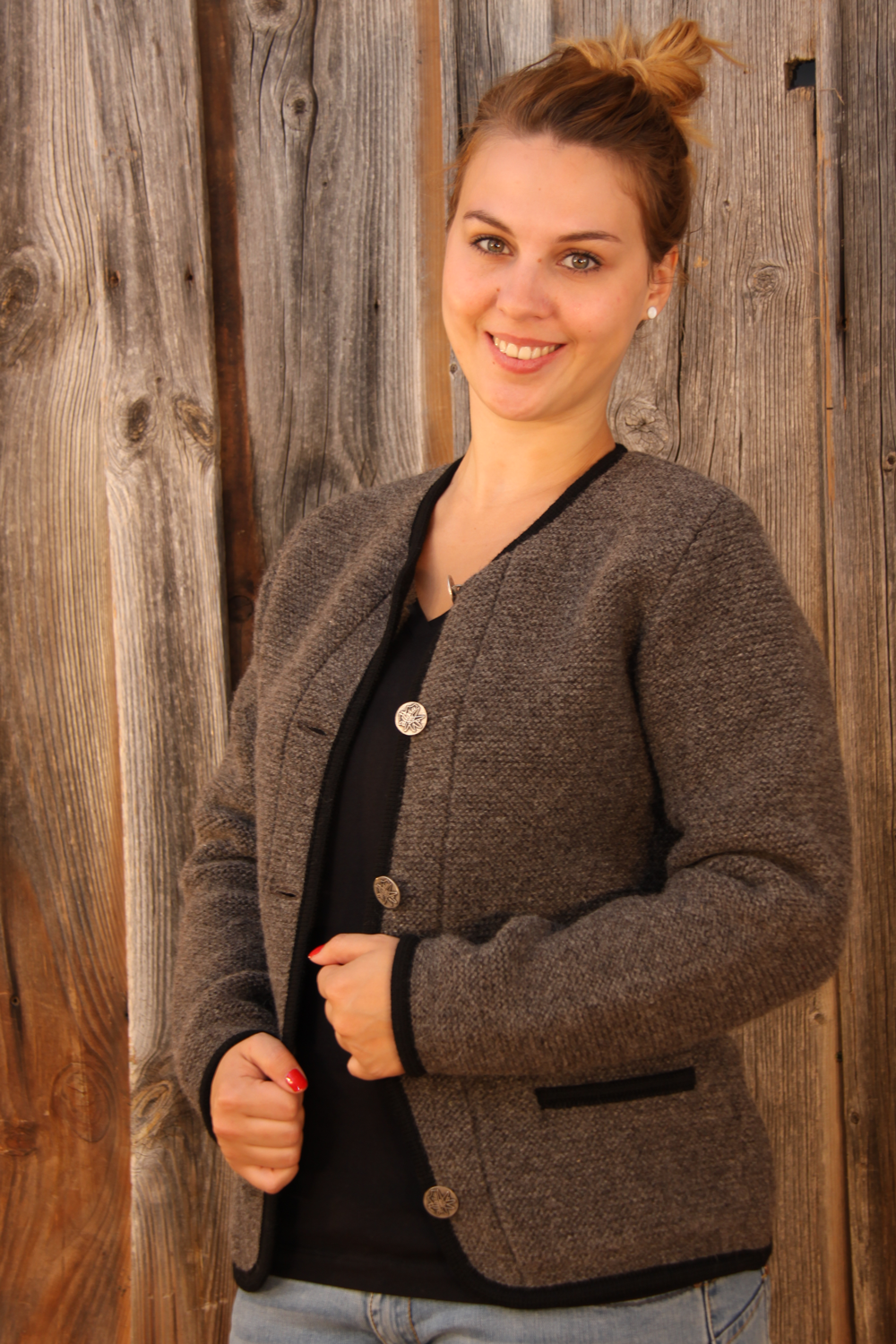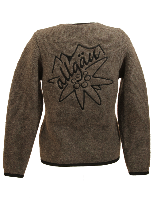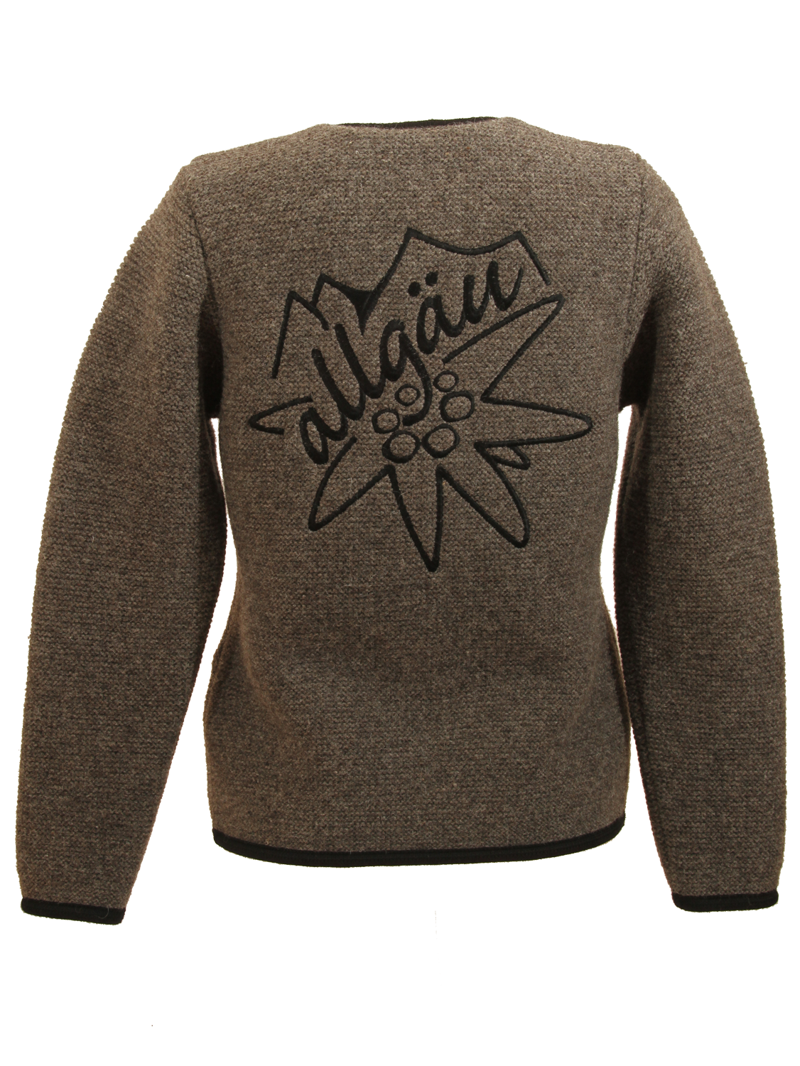 Unbehandelte Schafwolle aus Reutte - gefertigt in St. Johann in Österreich. Metall-Knöpfe mit Allgäulogo - Allgäulogo zudem bei allen Modellen auf dem Rücken in Wolle eingestickt. Passt perfekt zur Tracht aber auch zur Jeans.